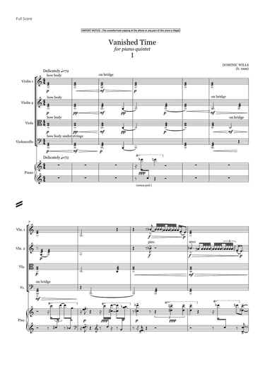 I love finding recordings of birdsong online and then using software to slow it down to a fraction of its original speed. In doing so, I like to imagine I am hearing the song as the birds themselves do, birds' hearts and worlds moving so much faster than our own. To write this piece, I slowed down the song of a skylark to 1/8 of its original speed. I then transcribed the song in full. A striking feature was the formal devices at play, which were completely inaudible to humans at full speed. I realised that the song consisted of a series of short motifs which repeated in cycles, until eventually changing to a new cycle. The cycles varied in the number of motifs in use, and in the length and variety of those motifs. Vanished Time comprises two of these cycles, each one forming a single movement. The melodies are my transcriptions of the slowed-down birdsong, reworked into a light, surreal world, where everything is heard with precision and clarity, as I imagine the skylark may hear its own song.