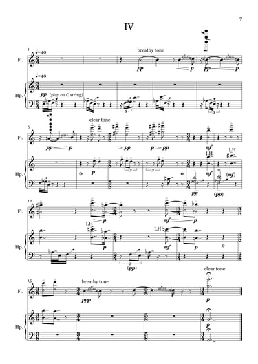 These short pieces derive much of their material from a series of recordings of the Melodious Warbler. I began by slowing down the original song, which is far too complex for a human ear to discern in detail, and picking out individual motifs, melodies and rhythms which I found particularly fascinating. Each musical moment went on to form one of the four little pieces. The song of this species is enormously varied, because it mimics all the other birds it encounters, making it something of a Stravinsky of the bird world. Indeed it was Stravinsky's and Prokofiev's tiny forms of the 1910s which were the initial impulse to write these miniatures. So, like the Melodious Warbler, my music is formed out of imitation.